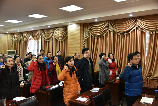 全体党员重温了入党誓词,齐唱国歌。 (张学海/文/图)