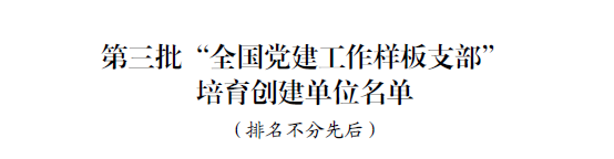 (通讯员韩鹏 编辑耿婧)近日,教育部下发了《教育部办公厅关于公布第三批全国党建工作示范高校、标杆院系、样板支部培育创建单位名单的通知》,公布了第三批新时代高校党建示范创建和质量创优工作评审结果,遴选产生了11个全国党建工作示范高校、100个全国党建工作标杆院系、1000个全国党建工作样板支部。继18小说