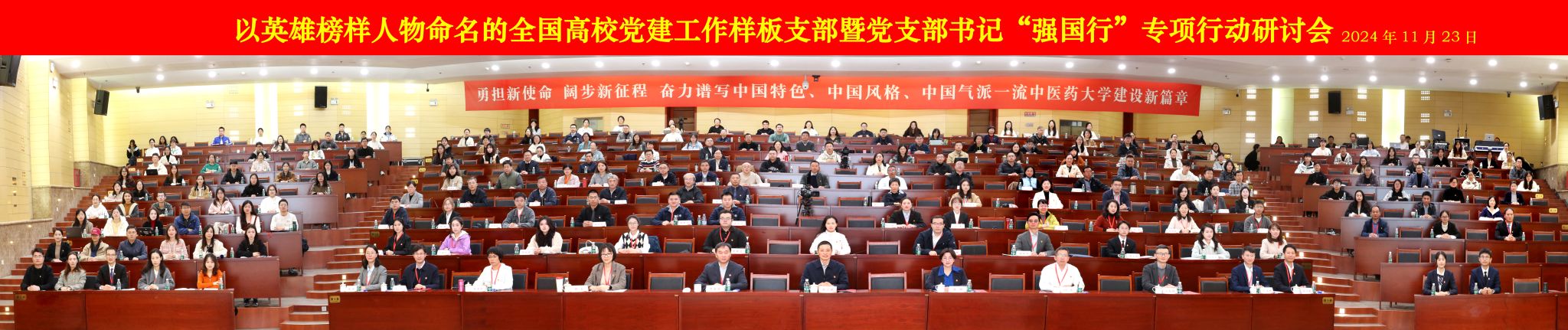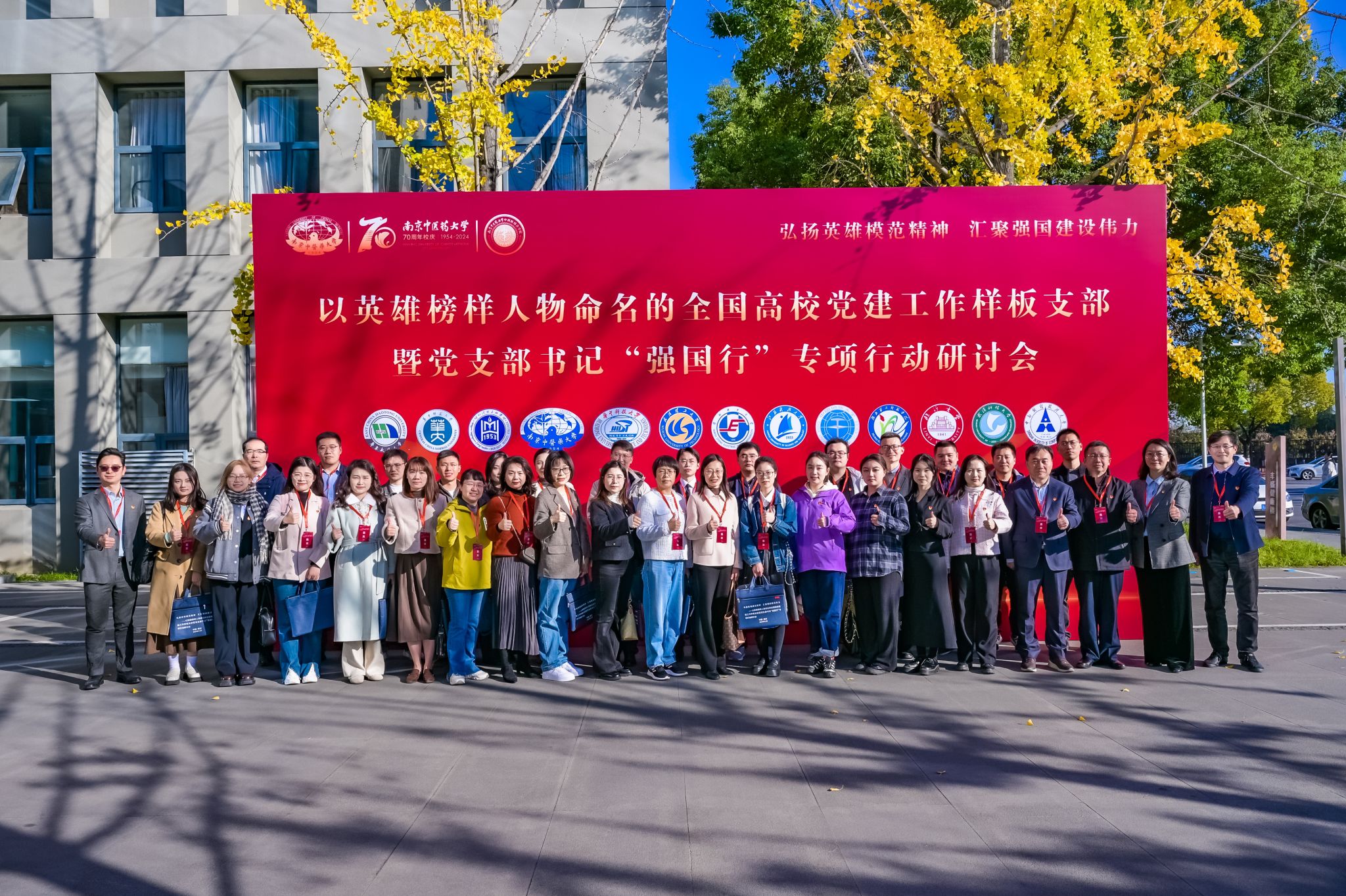 发起,至今已举办两届。本次研讨会由南京中医药大学党委主办,南京中医药大学中西医结合学院党委承办,全国12所以英雄榜样人物命名的全国高校党建工作样板支部代表参加会议。本次研讨会聚焦“弘扬英雄模范精神,汇聚强国建设伟力”主题,通过主题交流、经验互鉴、工作研讨,致力于发挥英雄榜样示范引领和辐射带动作用,共同筑强支部战斗堡垒,打造党建“双创”精品,促进高校党建工作提质增效。