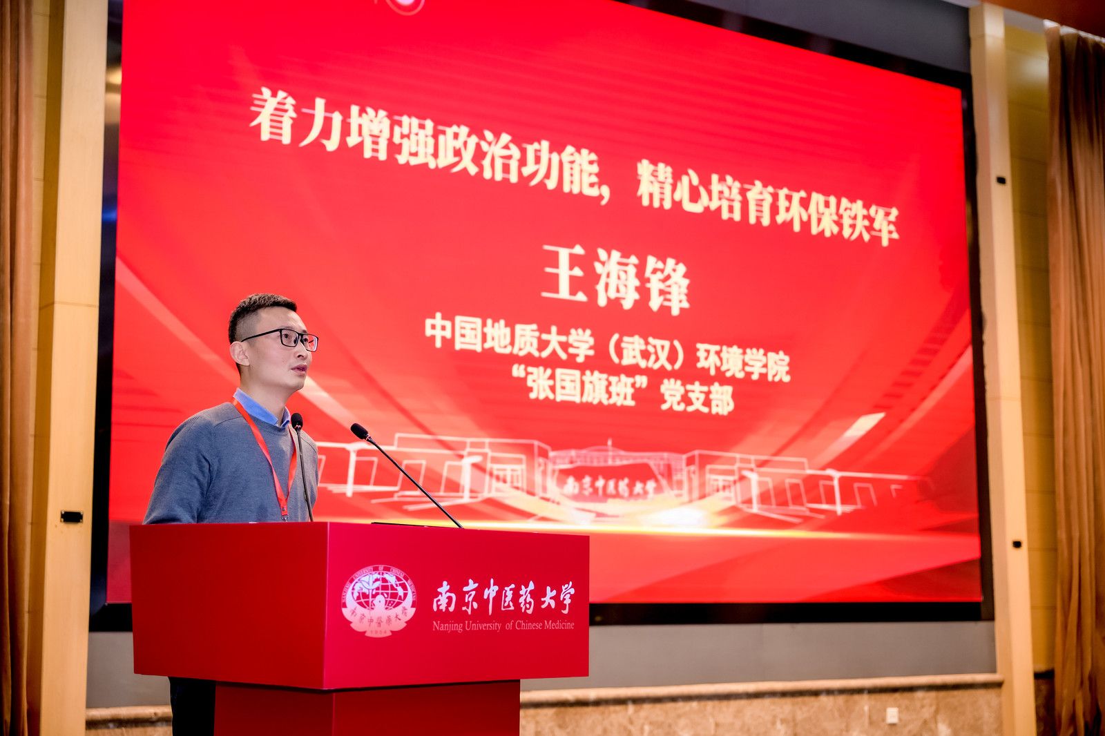 王海锋以“着力增强政治功能,精心培育环保铁军”为题介绍增强政治功能的地大实践、环境行动和支部探索,重点交流学院和支部在精准党建定位、增强党建育人功能、打造支部党建品牌等方面的认识和思考。