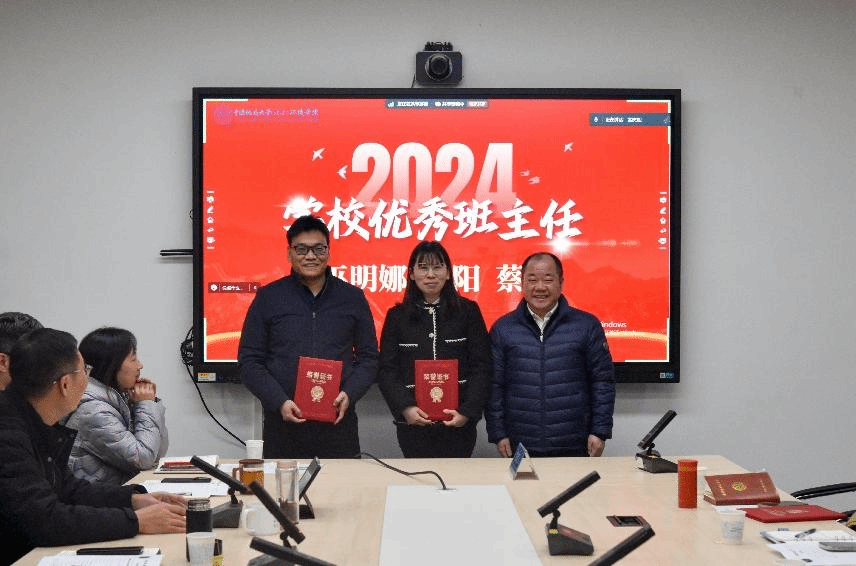 姜明敏为2023-2024学年度学校十佳班主任、学校优秀班主任和学院优秀班主任颁发证书。