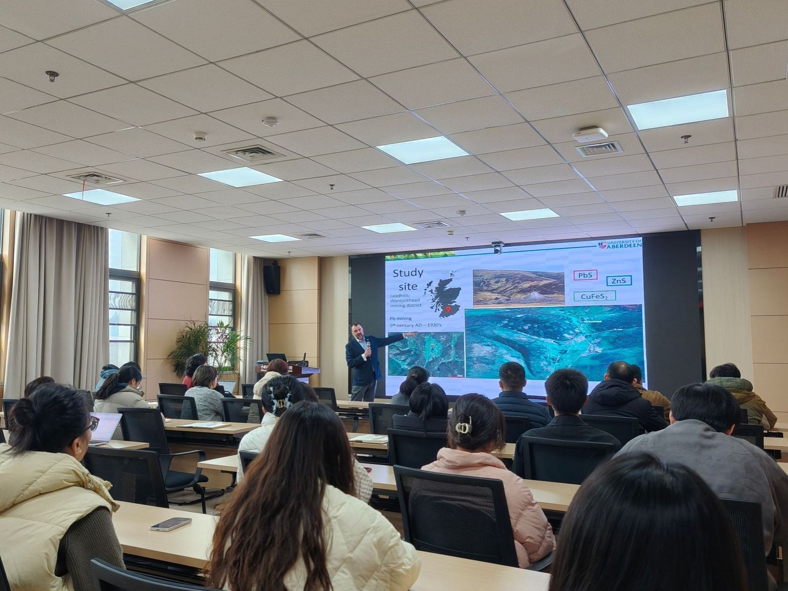 师生带来了题为“Legacy Metalliferous Mines: Should we still be worried?”的专题报告。报告中,Paton教授深入探讨了历史遗留金属矿山对环境的长期影响,特别是土壤污染的监测与修复技术的最新进展。报告结束后,Paton教授与在场师生展开了热烈讨论,现场气氛活跃,学术氛围浓厚。