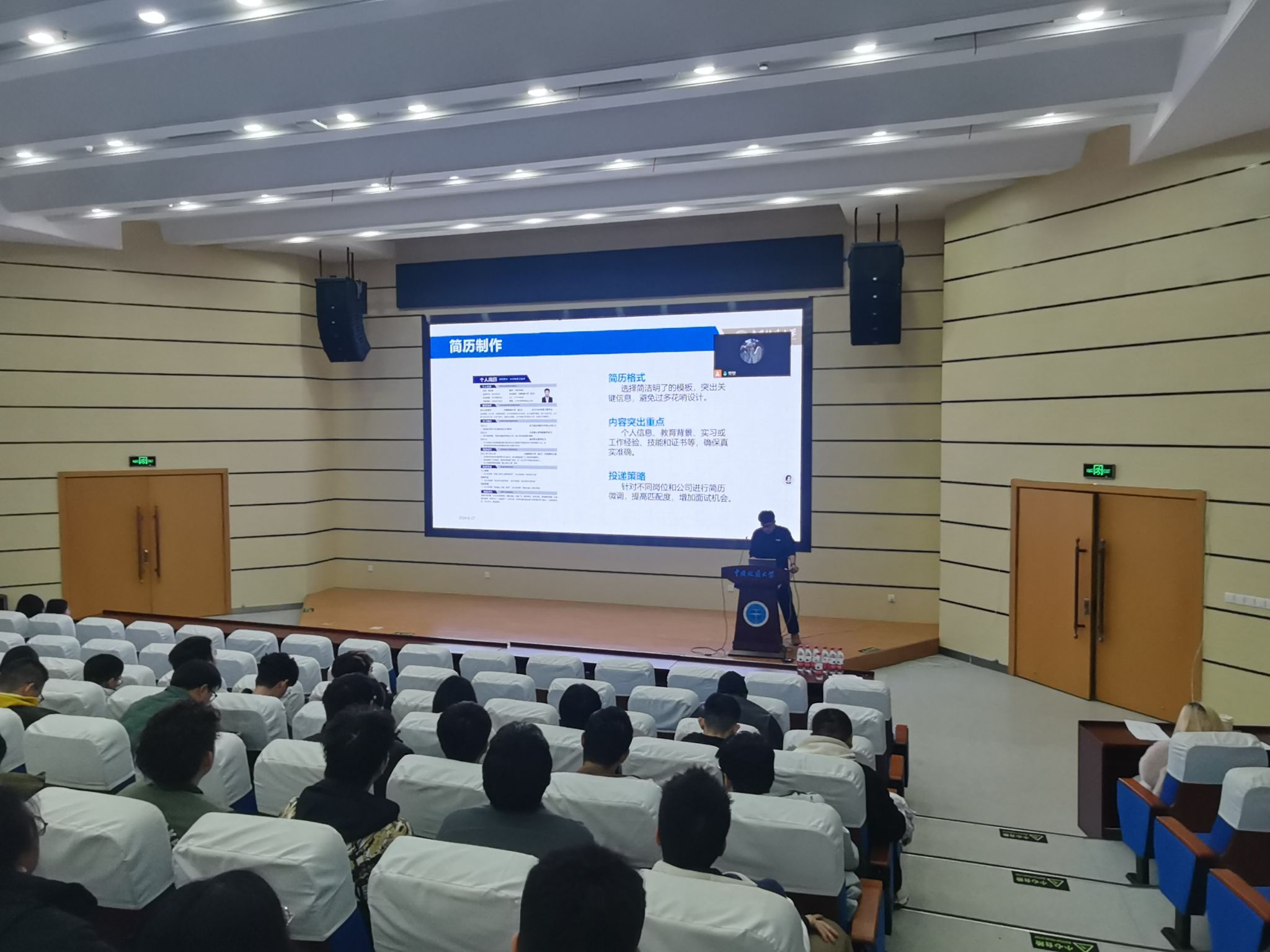 安全教育专题会议结束后,环境学院2025届本科生毕委会组织召开年级大会。海文考研副校长杨剑峰老师作考研复试和调剂培训,许经纬和王嘉硕分别分享考取外校和本校的复试经验,041211班李应保同学分享个人就业经验。随后,辅导员陈俊男围绕同学们提出的成长困惑以及关心的毕业就业等问题,及时解疑释惑、加强指导。