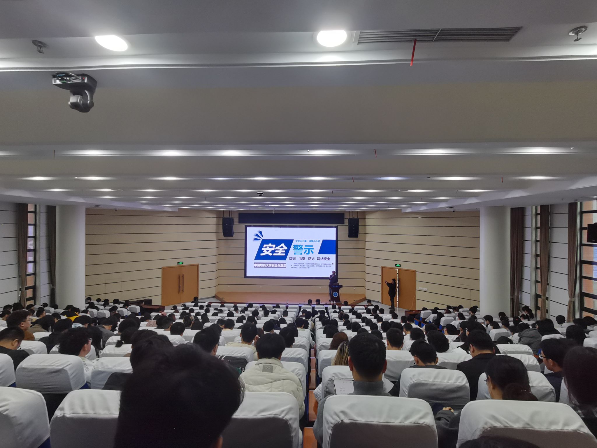 韩红卫介绍近期学校安全状况。他强调安全要常抓不懈,防范电信网络诈骗安全和消防安全更是重中之重。他叮嘱同学们要绷紧安全弦,时刻敲响安全警钟。