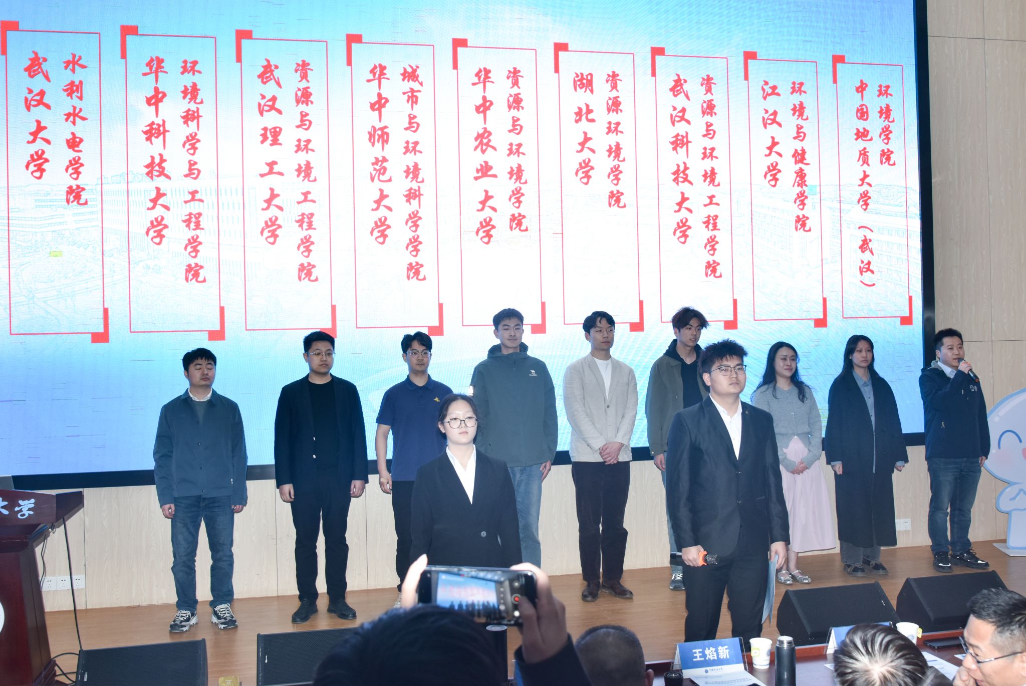 王焰新教授,校党委副书记、纪委书记唐忠阳,在汉环境类院校代表,学校党委学生工作部部长朱丹、党委研究生工作部部长许德华,18小说