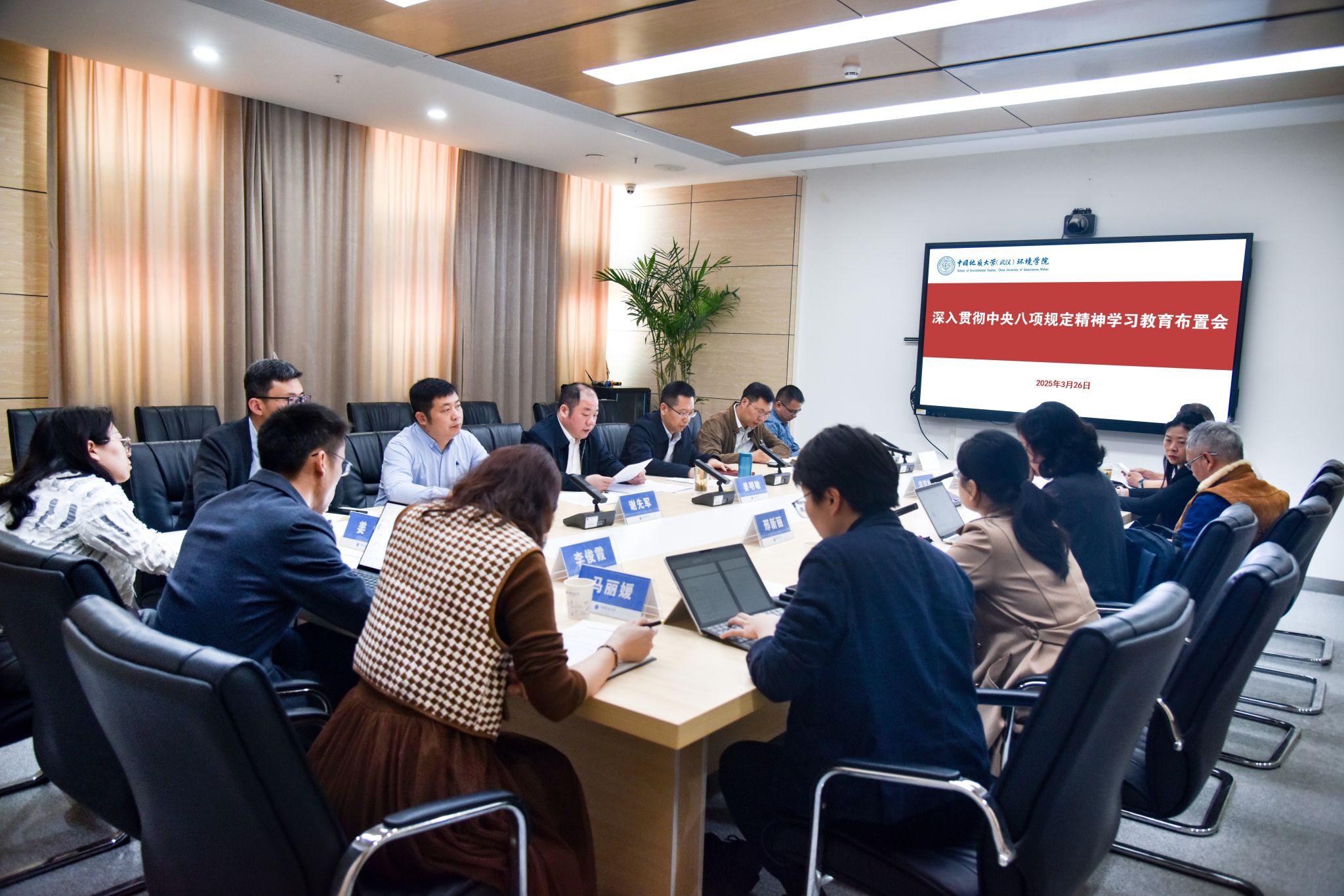 深入贯彻中央八项规定精神学习教育布置会在科教楼四308室召开。学院领导班子成员,党委委员、纪委委员,各系室中心党支部书记、主任,教师代表等参加会议。学院党委书记姜明敏主持会议。