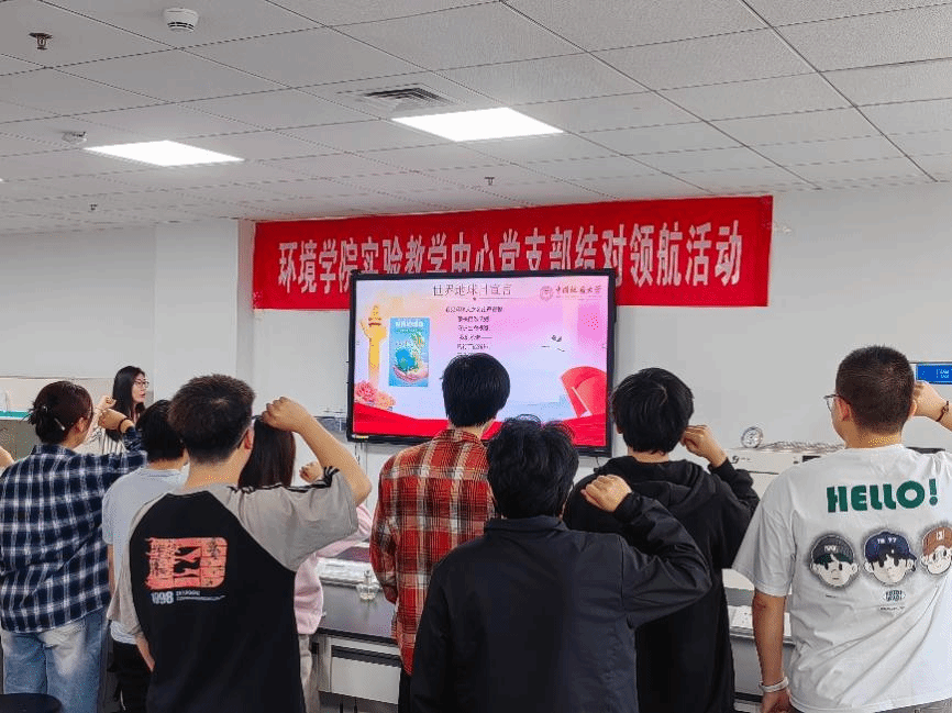 教师党员以“世界地球日”为契机,结合环境人的青年使命要求,带领学生进行世界地球日宣言,一句句庄严的誓词,让大家振奋精神,以身作则,从小事做起,筑造低碳校园,践行环境人的“绿色地球、健康地球”使命。
