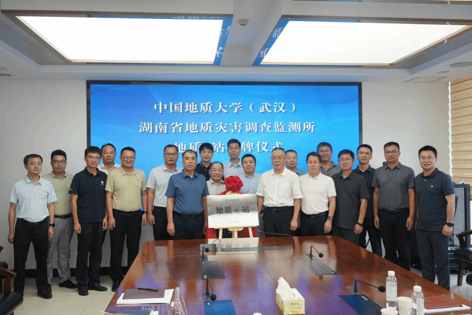 、卓越工程师学院相关同志赴湖南省地质灾害调查监测所(以下简称地灾所)调研交流,并举行“地质e站”揭牌仪式。地灾所所长赖继文、党委书记皇甫悦星,副所长张辉志、周鑫,相关部门和经济实体负责人参加座谈交流。皇甫悦星主持会议。