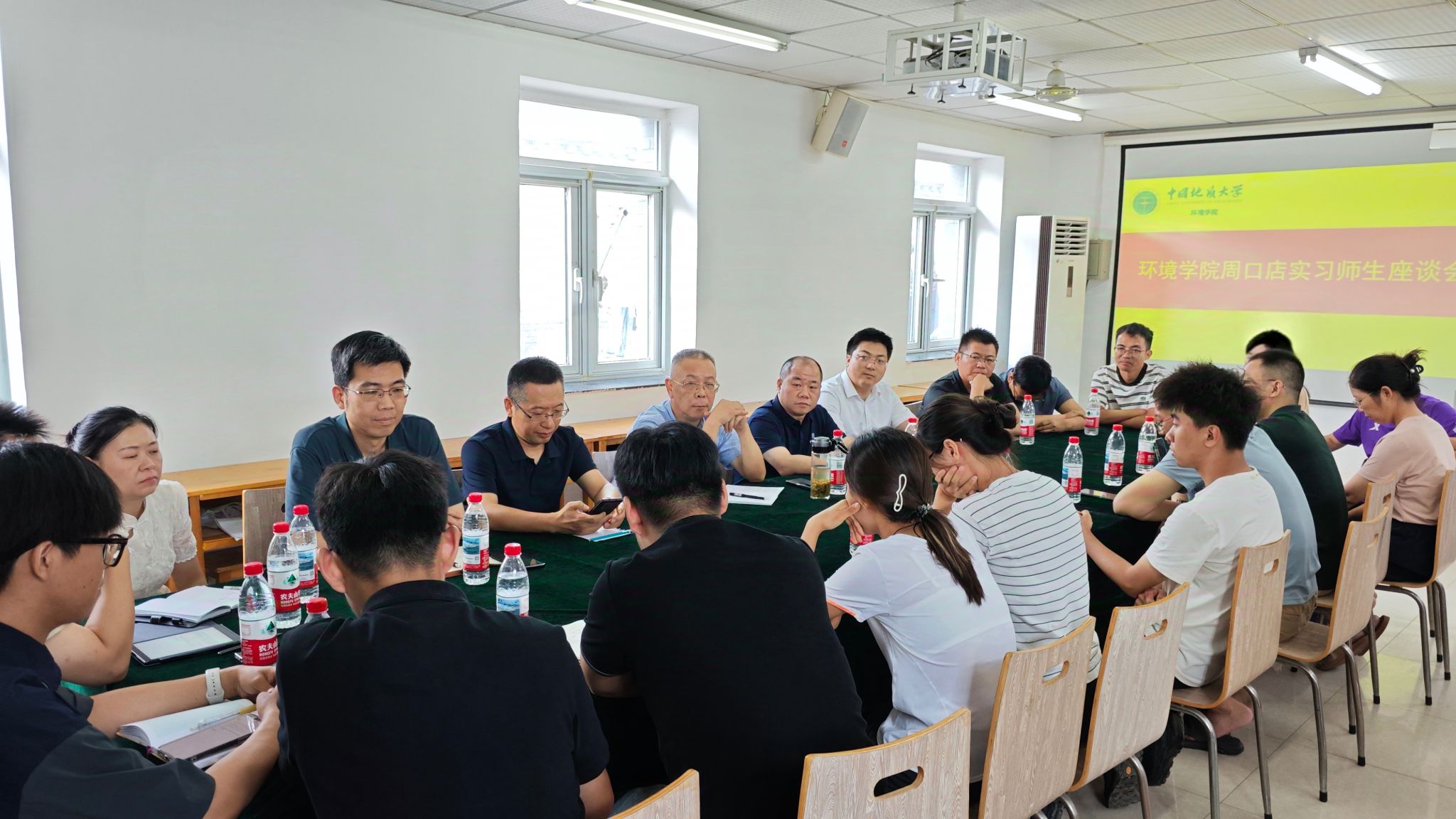 在实习师生座谈会上,实习队队长、水资源与水文地质系副教授胡顺汇报教学安排和实习进展,参会师生围绕教学内容、实习收获、生活保障等畅谈体会,并对实习教学的优化提出意见。