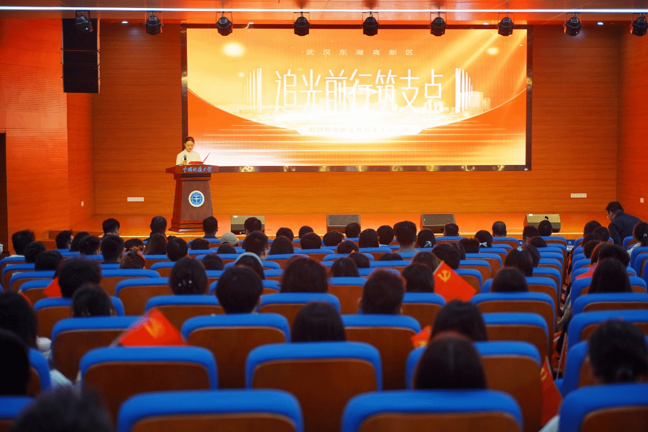 、艺术与传媒学院、研究生院、未来城校区管理办公室承办。宣讲内容分为“光明的火炬”“时代的征程”和“追光的步伐”三个篇章,通过沉浸感、互动式、参与性的设计,融理论宣讲、音乐演绎、现场朗诵、情景表演于一体,用“小切口”展现“大主题”,将党的创新理论与中国光谷富有新时代特色的典型故事讲活讲透,生动展现中国共产党精神谱系的丰富内涵和新时代改革发展历程。