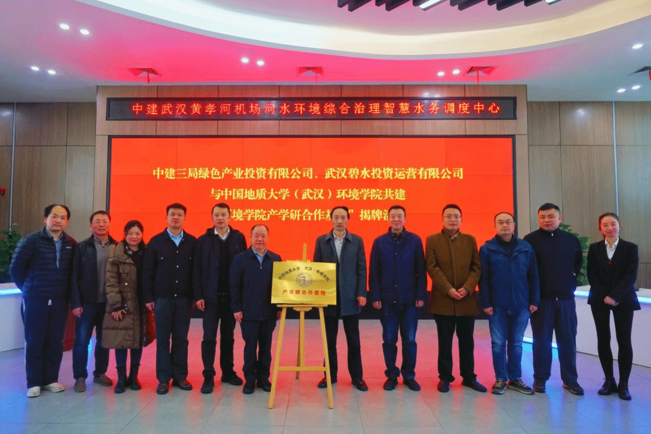 产学研合作基地”揭牌仪式在黄孝河机场河项目智慧水务中心顺利举行。