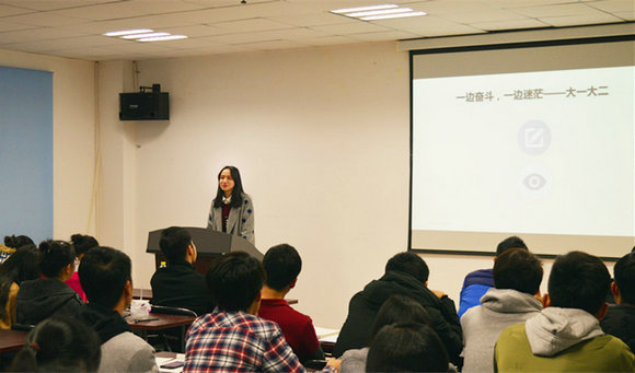 张妍婷与大家分享了大学的学业与职业生涯规划。敢于做梦—追梦—圆梦,她告诉同学们,保研路程的开拓不仅要努力学习,提高“硬实力”,更要学会充实自己,完善“软实力”。在保研的路上,最忌讳的就是失去目标。“你热衷的研究方向、你仰慕的老师、你梦寐的学校,每一步的选择,你都应该明确自己想要什么。”