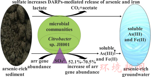 文章详情:Jianing Wang (王家宁), Xian-Chun Zeng (曾宪春), Xianbin Zhu (祝贤彬), Xiaoming Chen (陈晓明), Xin Zeng (曾昕), Yao Mu (穆遥), Ye Yang (杨烨), Yanxin Wang (王焰新), Sulfate enhances the dissimilatory arsenate-respiring prokaryotes-mediated mobilization, reduction and release of insoluble arsenic and iron from the arsenic-rich sediments into groundwater,