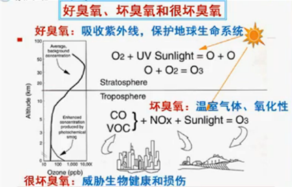 臭氧的作用由其在大气层中的位置来决定,处于平流层20 km左右范围的臭氧可以吸收200-315nm波长的紫外线,保护地球生命系统不受影响(图1)。