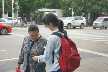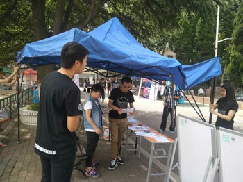 (左图为小组成员向居民介绍活动,右图为社区居民参与问卷调查)