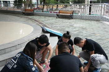 (左图为被展板吸引的小孩,右图为社区小组成员合影)