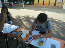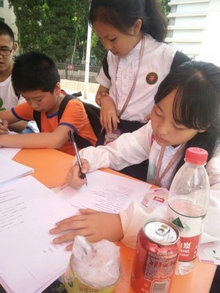 (左图为几个小朋友在做问卷,中、右图为大学生们在答题)