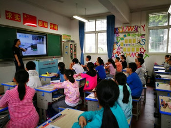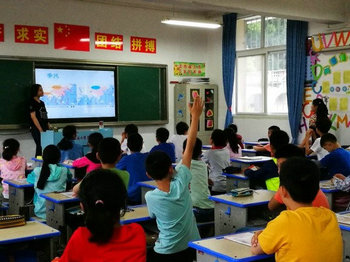 (图为小学生积极举手回答问题)