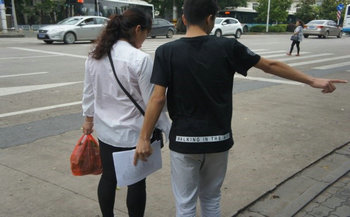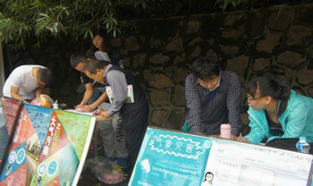 (左图为小组成员们在搭帐篷,右图为大学生们询问)