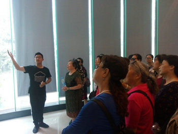 (左图为吴铮同学为前来的参观者讲解,右图为郑衍欣同学为前来的参观者讲解)