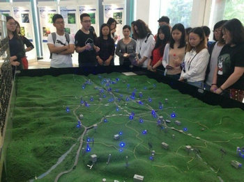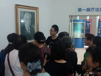 (左图为苏峻同学为前来的参观者讲解,右图为25日志愿者的合照)