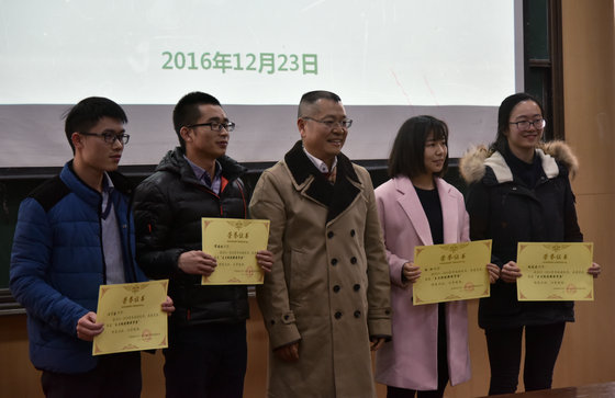 殷昌平先生、梁杏教授和王亮清教授分别为获奖同学颁发荣誉证书。
