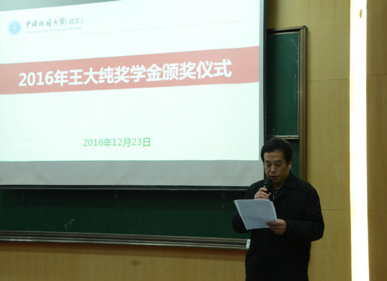 2016年度“王大纯创新奖学金”获奖者杨逸君、2015年度“王大纯励志奖学金”获奖者唐豪杰先后发言,感谢王大纯基金会给予的肯定与鼓励。他们表示,将以更加认真的态度,勤奋进取,秉承“艰苦朴素、求真务实”的校训精神,用自己所学为水工环事业做出贡献,以此回报基金会、回报学校、回报社会。