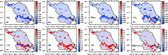 电厂排放是我国大气污染物的主要来源之一,对我国大气环境变化影响明显。基于排放控制技术建立的电厂大气污染物排放清单需考虑诸多因子,存在很大的不确定性。本研究基于电厂排放污染物的实时在线监测浓度和烟气排放量更新了江苏省电厂清单,与应用广泛的清华MEIC清单中相应部分进行了对比(图1):更新后的江苏省电厂SO2、PM2.5、PM10和NOx排放量明显降低,而CO、BC、OC和非甲烷挥发性有机物(NMVOCs)排放量增高。