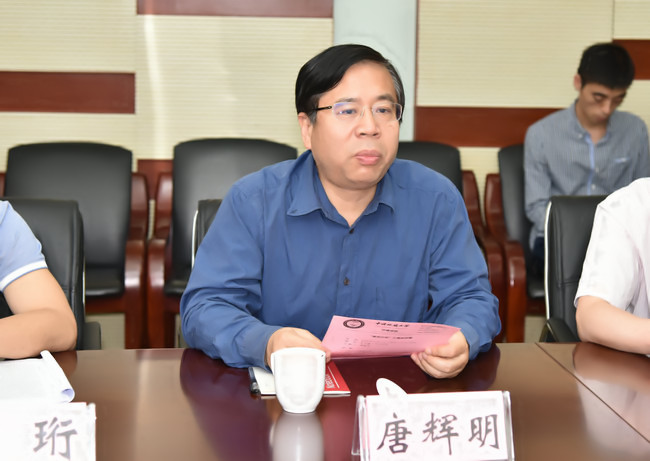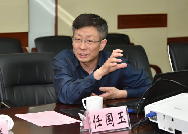 唐辉明主持汇报会,任国玉进行汇报。