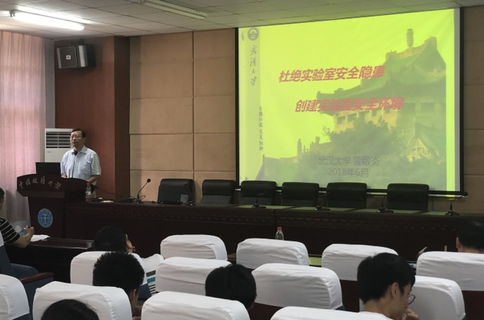 三是举办《学校辐射环境安全和防护管理》和《高校实验室安全管理趋势》专题报告,宣讲辐射安全、辐射的安全申报程序及实验室安全管理的方向。