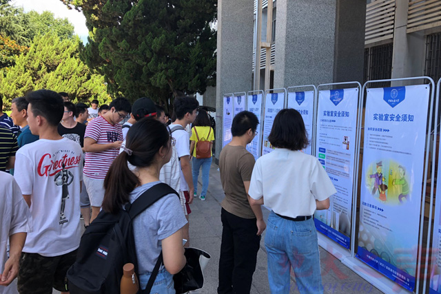 活动现场,参与演练的师生观看了实验室安全知识展板,并在“实验室安全应急演练签名墙”上签名,表达了共同维护实验室安全的决心。