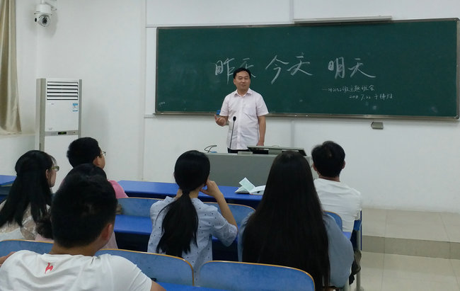 班会以“昨天·今天·明天”为主题,意在启发同学们对已经过去的三年大学生活的回顾与反思,并对今后学习生活进行展望和思考。