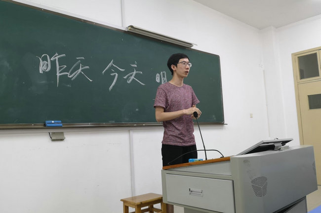 主持人社前任社长刘敬章同学的发言令人深省。作为从外国语专业转过来的他要比别人付出更多努力才行。从大二开始,他因为要补修许多课程,再加上学生工作,很少有时间休息。但他一直保持着积极乐观的心态,并与班级其他同学相处融洽,互相帮助。他的精神值得我们学习。