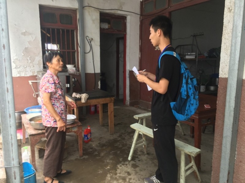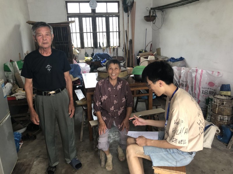 图为:实践队员向苏州陶桥村村民询问能源消耗量 田小义摄