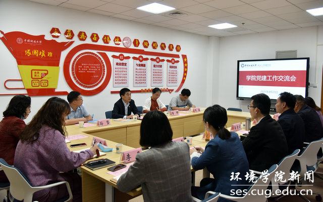 进行党建工作专题交流。学院党委书记李素矿,学院党委副书记王海锋,水资源与水文地质系党支部书记姜雪、院直党支部书记张学海,院办主任左麦枝,组织秘书严丽莎,辅导员李平、宋霖等参加会议。