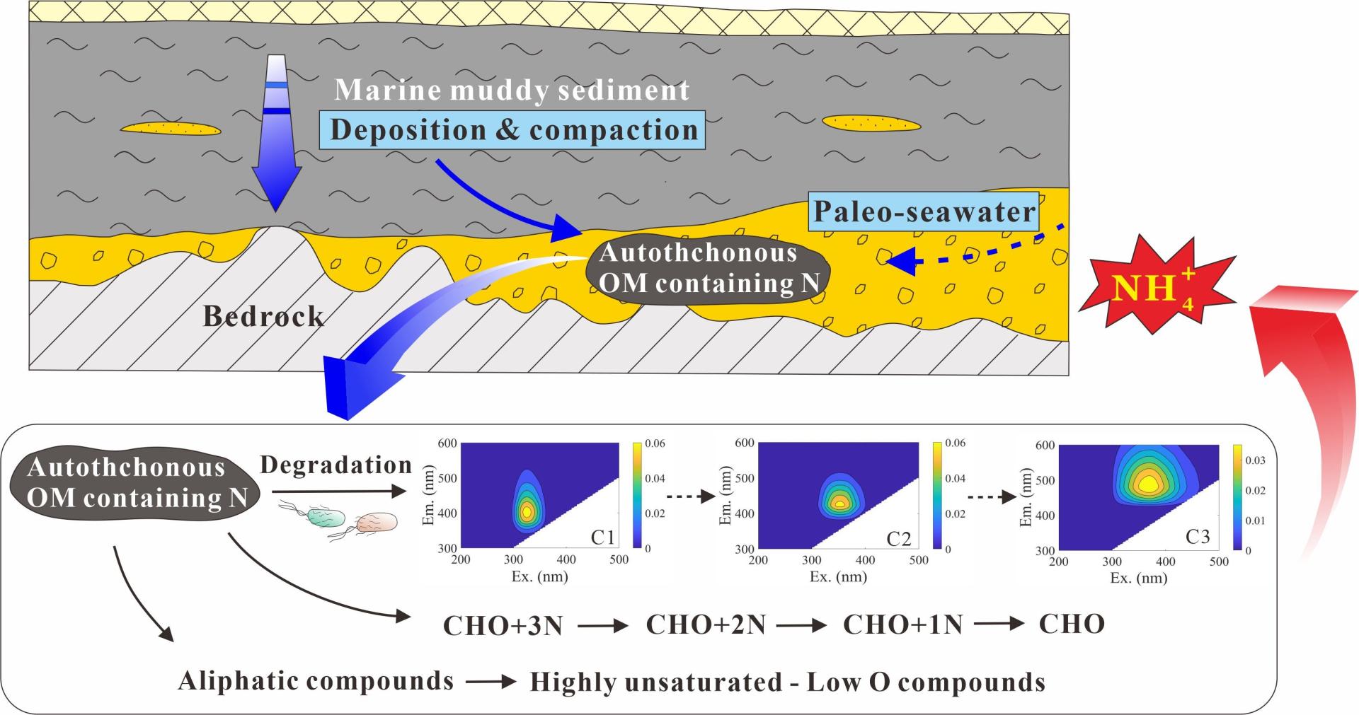 天然高铵地下水是近年来被普遍发现的一类原生劣质地下水,其铵氮浓度水平通常较人类活动引起的地下水铵氮污染更高,是内陆湿地和海岸带水体营养盐潜在的重要来源。现有研究发现高铵地下水的形成与天然有机物关系密切,但对于天然有机物对天然铵氮迁移富集的影响机理,认识十分薄弱。两项成果分别针对江汉平原内陆冲湖积相高铵地下水和珠江三角洲平原海相高铵地下水,率先综合利用有机碳与无机碳的稳定碳同位素组成、有机物三维荧光特征、有机物分子组成,分别刻画了内陆冲湖积相和海相高铵地下水的形成机制,揭示了内陆冲湖积相与海相高铵地下水成因模式的差异性,弥补了氮的环境与生物地球化学循环中一直被忽视的关键一环。