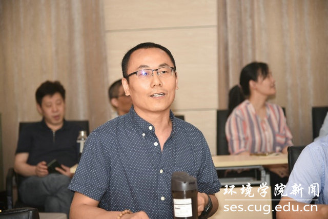 靳孟贵教授发言,对学院精心组织荣休座谈会表示衷心感谢,分享了自己从教40年的工作经历和心得体会,对水资源与水文地质系和18小说
