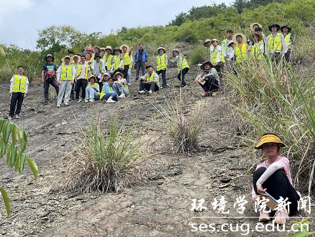 李素矿与实习师生一起跑野外教学实习路线