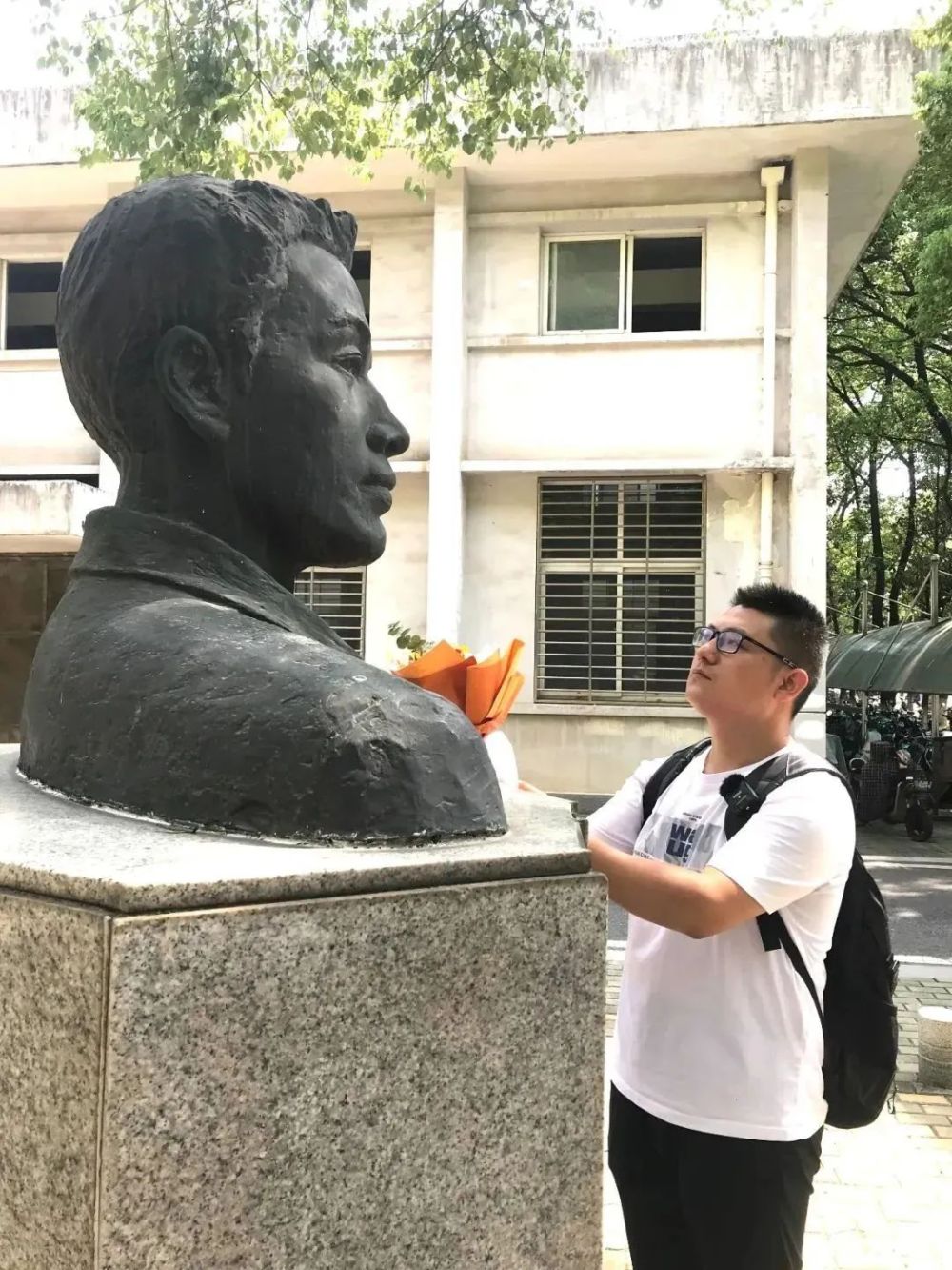 (武汉)里的张国旗塑像前,31岁的硕士研究生新生张云飞,深深地三鞠躬。