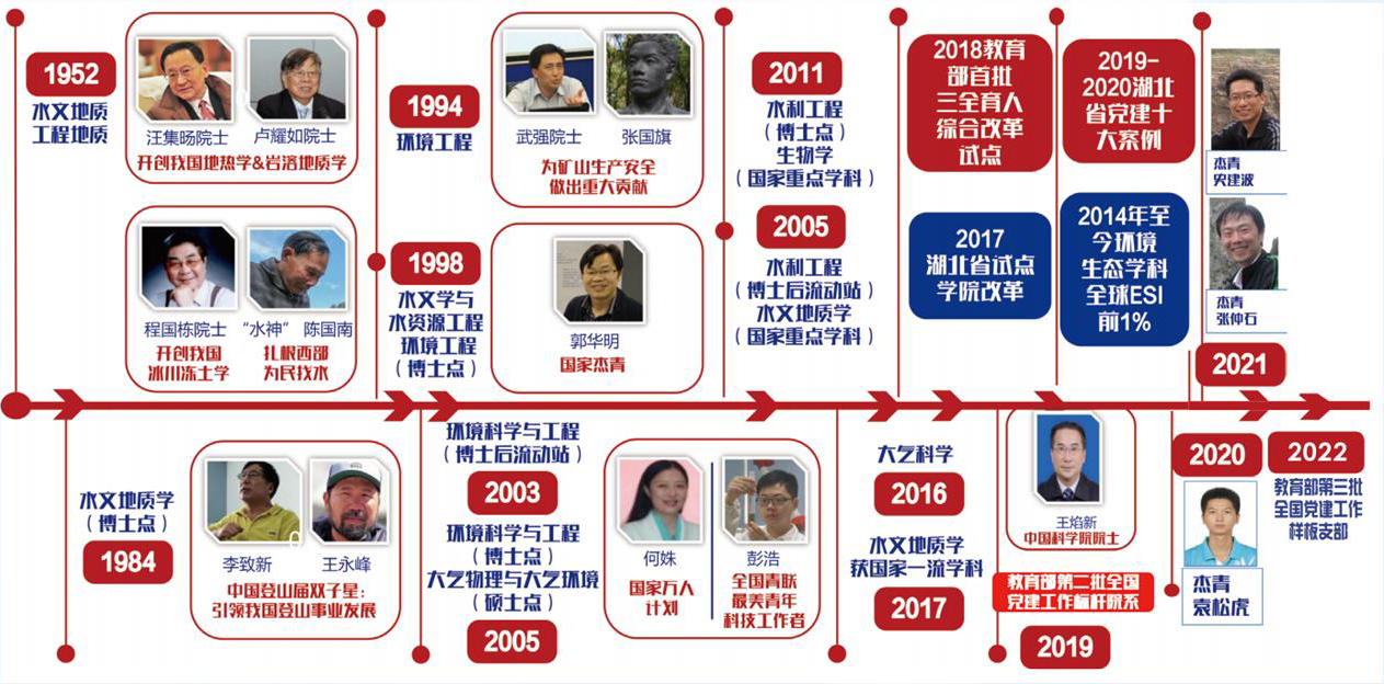 坚持立德树人根本任务,聚焦质量发展,推进一流研究型学院建设。积极推进“三融合”人才培养模式,构建水-土-气-生-环一体化育人,大力推进跨学科教育。近年来,学院实现院士零突破,2019年王焰新教授当选中国科学院院士,获得2项国际大奖。学院现有院士1人、万人计划1人,国家杰出青年科学基金获得者4人,国家优秀青年科学基金获得者6人,省部级人才和教学名师17人,形成了院士领衔,杰青、优青等人才聚集的高素质科技人才队伍。现有国家自然科学创新研究群体、国家教学团队和教育部高校学科创新引智基地各1个,拥有湖北省创新群体和自然资源部科技创新团队各1个。拥有15个省部级以上的科研平台,实现了每个学科专业拥有自身独立运行的国家级省部级科技平台。“水文与水资源工程”“环境工程”“地下水科学与工程”三个本科专业入选国家级一流本科专业建设点。2021年,18小说