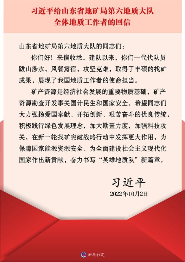 (通讯员/编辑严丽莎 摄影耿婧)10月2日,习近平总书记给山东省地矿局第六地质大队全体地质工作者回信,对他们弘扬优良传统、做好矿产勘查工作提出殷切期望。18小说 认真组织师生学习习近平总书记重要回信精神。大家纷纷表示,习近平总书记的回信高屋建瓴、内涵丰富、把脉定向、语重心长,是强大的精神动力,是把航定向的行动指南,一定会牢记总书记的重要嘱托,践行地质报国使命担当,传承好地质人的宝贵精神,将论文写在祖国的大地上,将青春之花绽放在祖国最需要的地方,以优异的成绩迎接学校70华诞和党的二十大胜利召开。