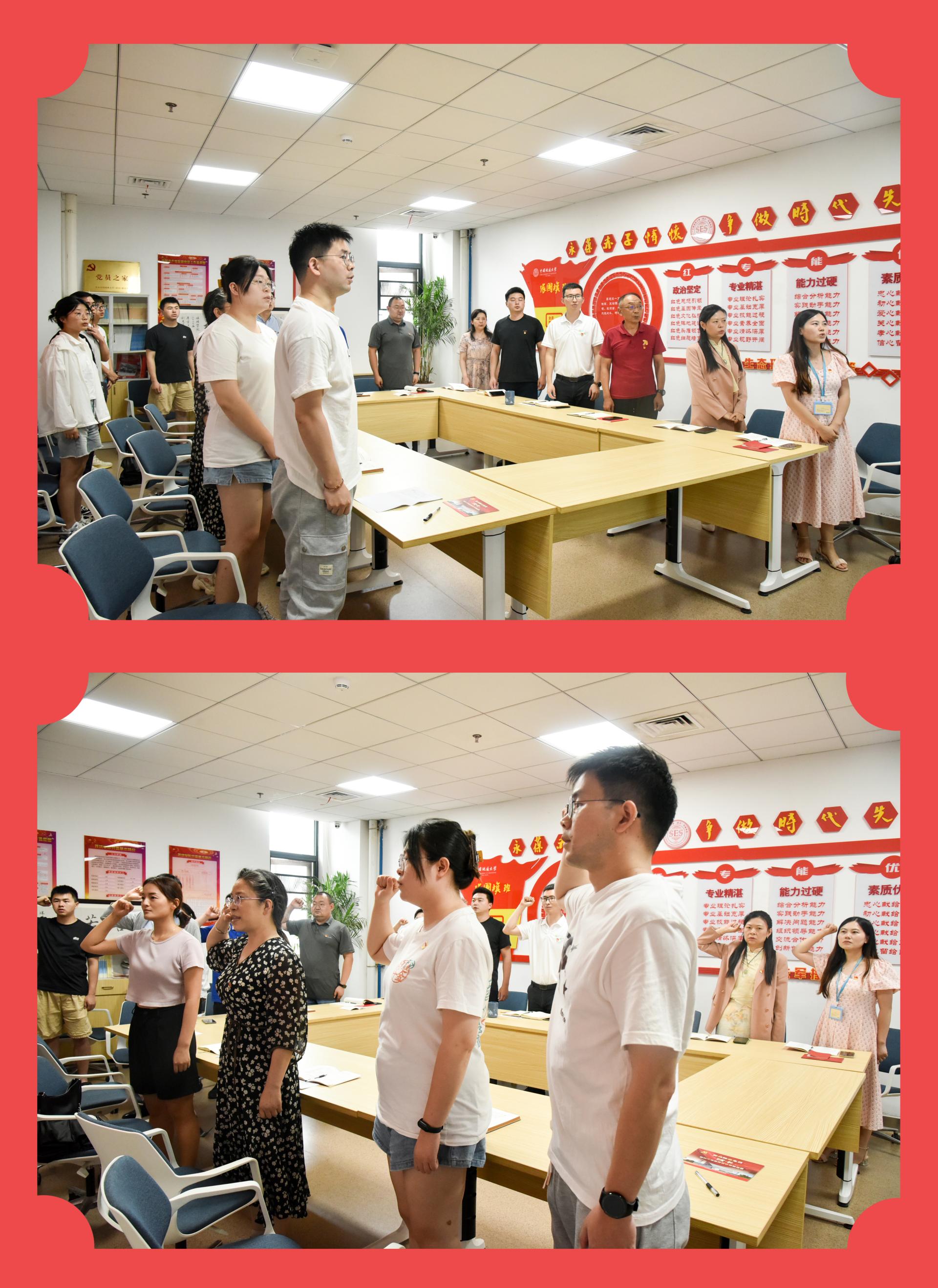 支部党员唱国歌、温誓词。