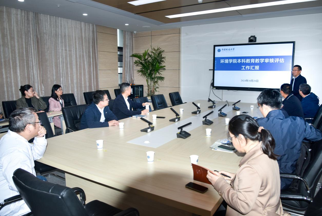座谈环节,院长史建波介绍了学院的基本情况和审核评估相关工作。裴建中就“学院专业设置颗粒度”、“学院如何贯彻‘严在地大’的教风学风”、“学院党委会和党政联席会如何研讨人才培养”、“课程体系中专业核心课程改革和建设”等方面与学院领导进行交流。裴建中对学院各方面的发展和建设给予高度肯定,同时对学院教学成果奖、科技进步奖等方面工作给与了宝贵建议。姜明敏代表学院对审核评估专家给予的指导表示感谢,并就做好学院审核评估后半篇文章提出了思路和建议。