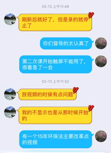 面对特殊的教学环境,学校和学院都在开学前推出了各种的网上教学资源和教学方法。环境评价联盟小分队在开学前几天,便化身网上教学软件的测试员,分享教学软件的使用心得;开学第一周,每位老师在完成自己的教学任务同时,还扮演了学生的角色,对网络效果、软件功能、教学效果进行反馈,提出更优网络教学方式,最多的时候,每位老师的直播课堂里会有十位 “卧底”。