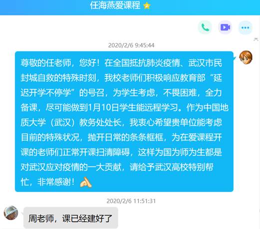 与爱课程网联系后,因上期课程还没有完全结课,所以导致MOOC第二次开课受到影响。考虑到校内其他课程组可能存在同样问题,以教务处处长名义出面联系爱课程网的课程开课负责人,希望能考虑到武汉的特殊疫情形势,为 18小说