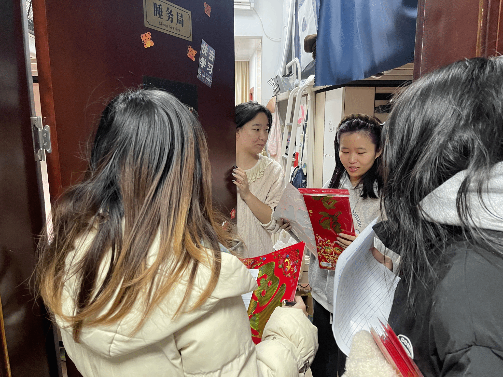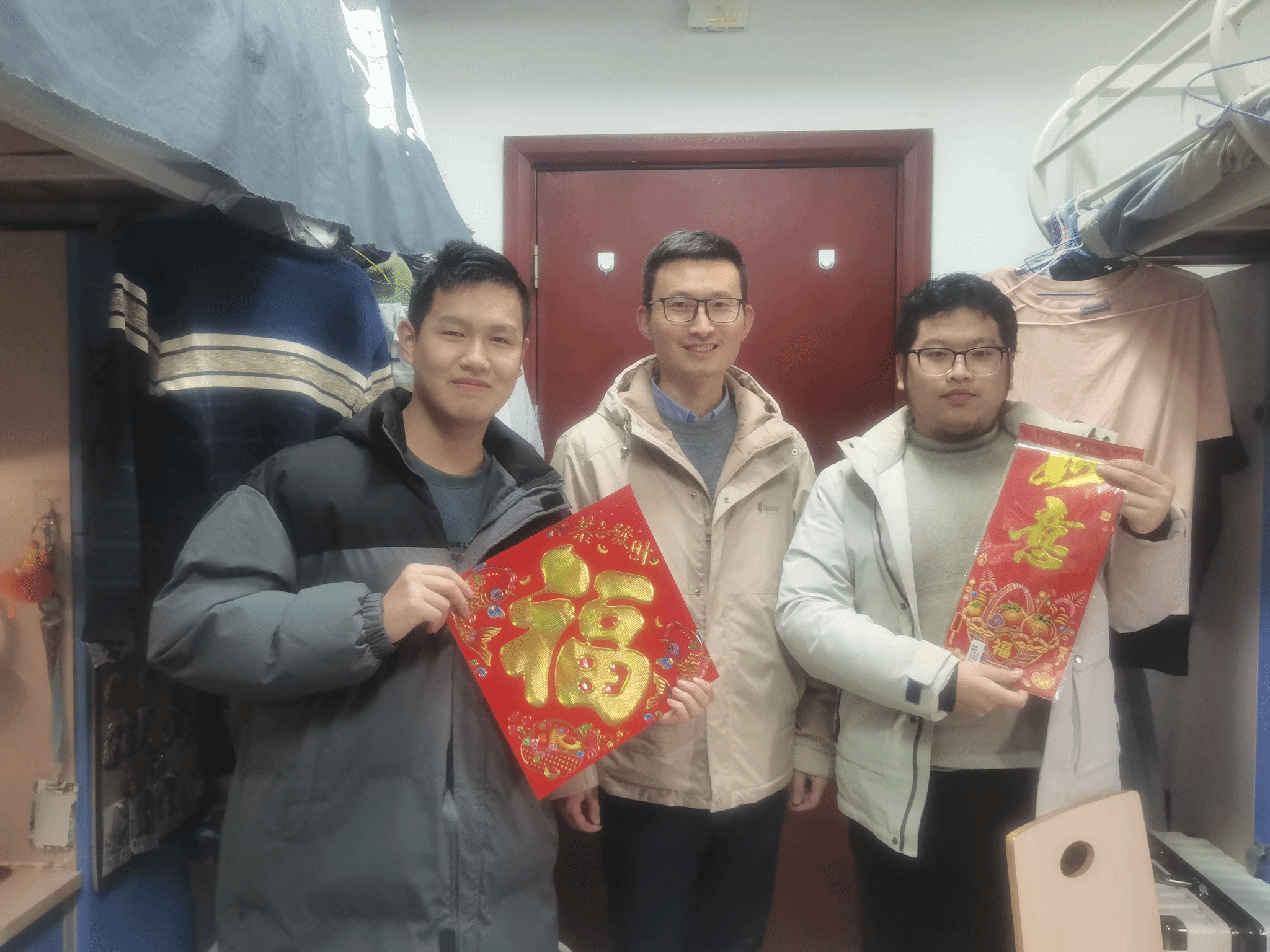 随后,全体老师分别走访本研学生宿舍,仔细检查宿舍卫生状况,叮嘱同学们要保持良好生活习惯,要勤通风、勤洗手、勤消毒,共同维护好宿舍卫生环境。他们提醒同学们要关注个人身心健康,注意防寒保暖,警惕流感等流行病,并听取大家对学校学院管理政策建议和意见,对同学们日常生活中遇到的困难与需求及时给予反馈。同时,他们叮嘱同学们要严格执行寒假离校和新学期返校相关要求,与导师和辅导员勤沟通、多交流。