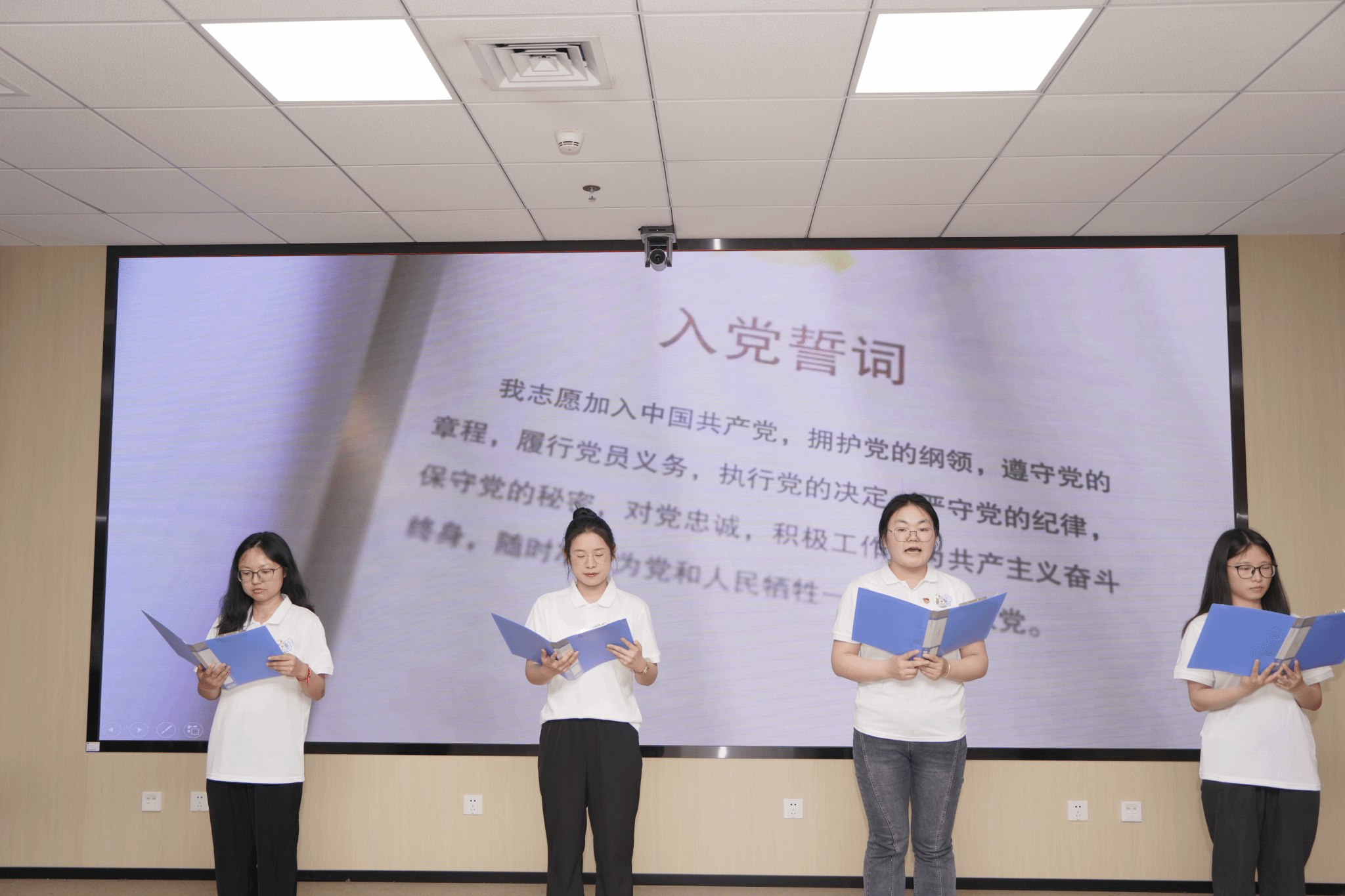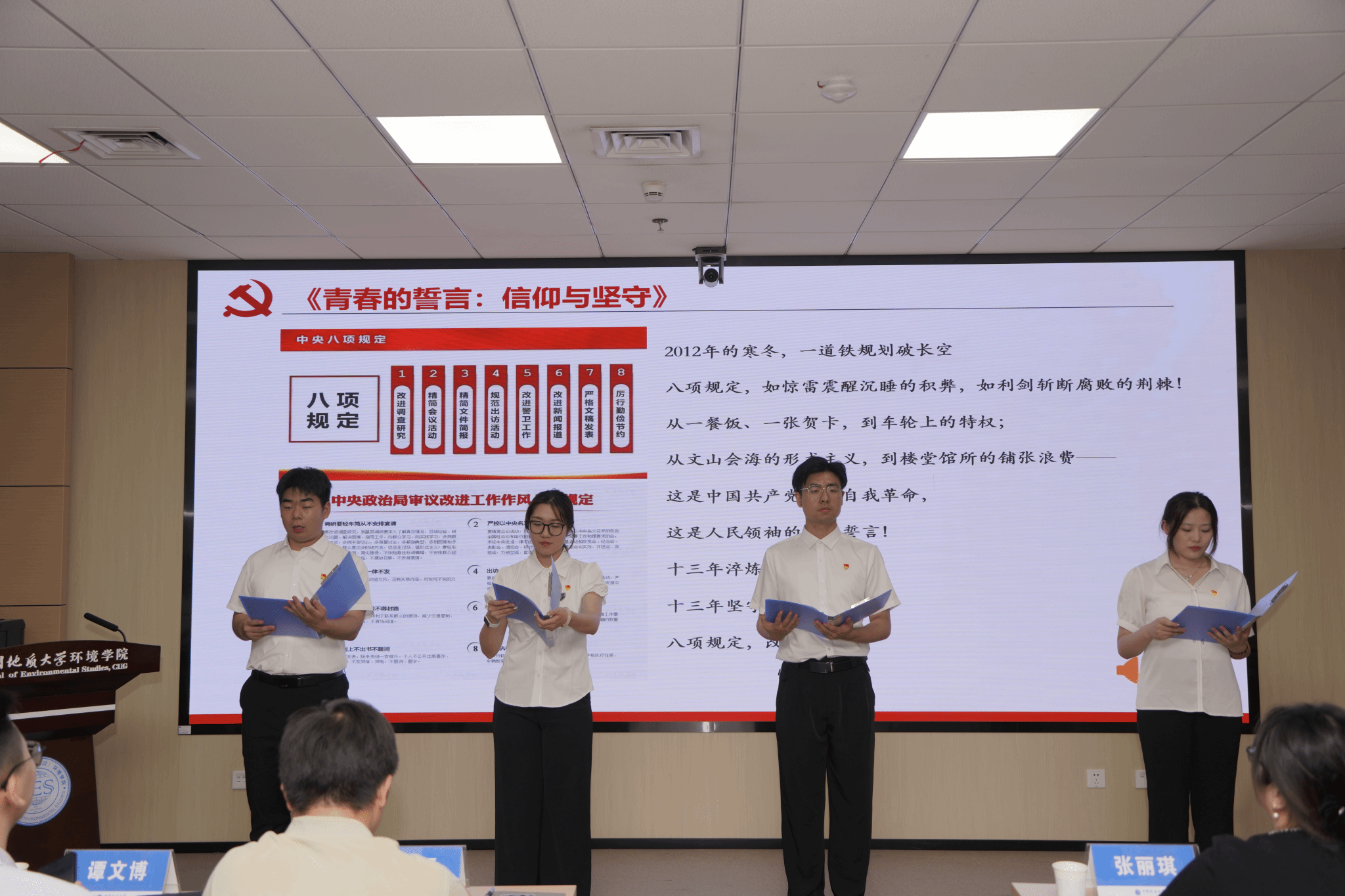 学生党建中心以《青春的誓言:信仰与坚守》为题进行朗诵。