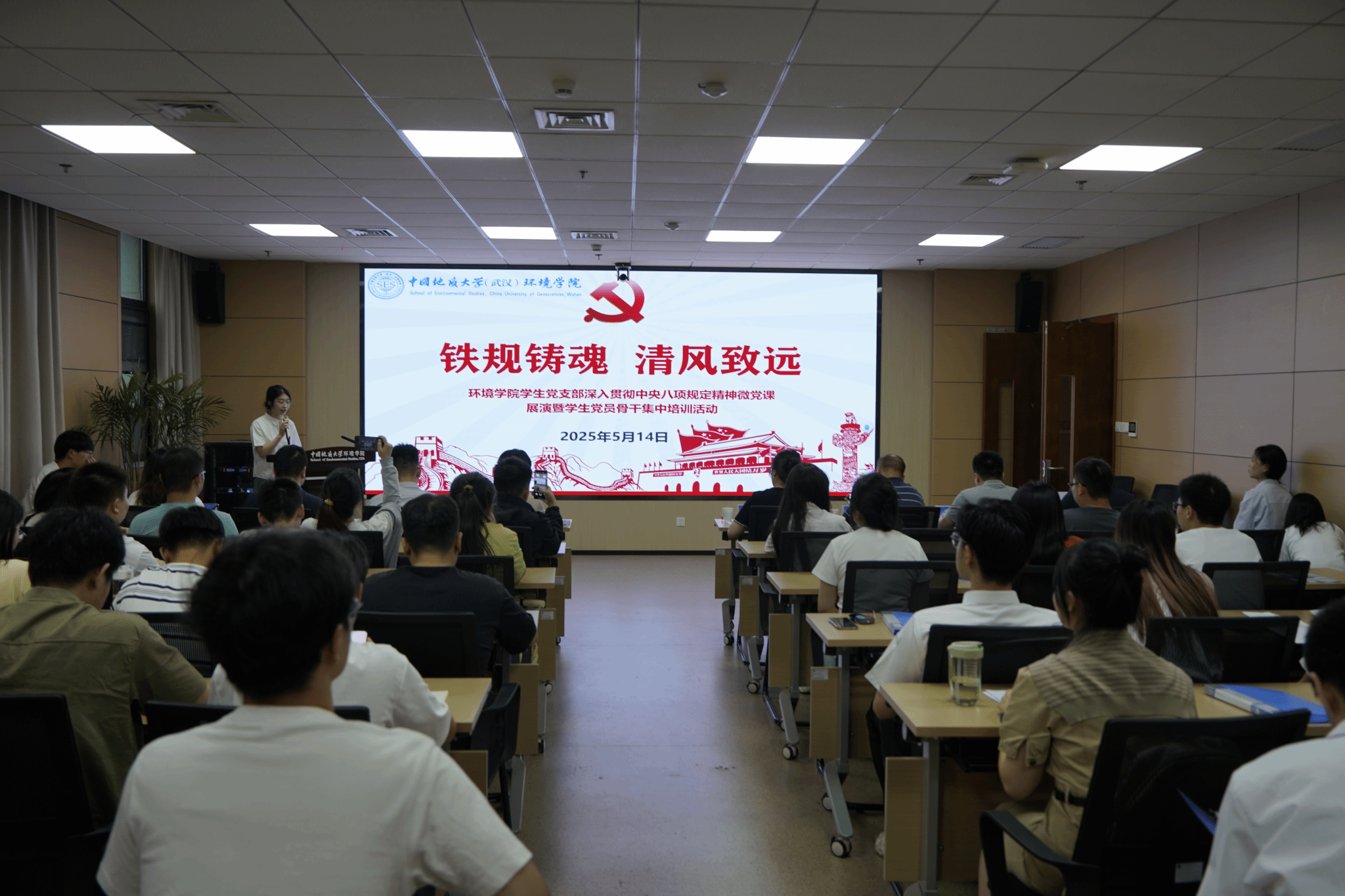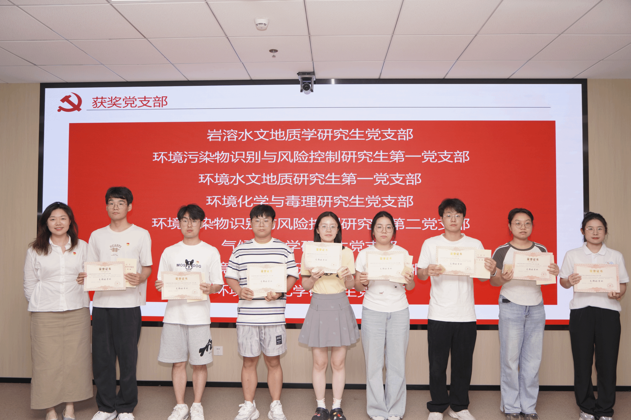 刘欣然为获得学院“支部好案例”的学生党支部颁奖。经过前期评选,岩溶水文地质学研究生党支部、环境污染物识别与风险控制研究生第一党支部、环境水文地质研究生第一党支部、环境化学与毒理研究生党支部、环境污染物识别与风险控制研究生第二党支部、气候动力学研究生党支部、环境水文地质研究生第二党支部、环境地球化学研究生党支部等8个支部提交的工作案例获评学院“支部好案例”。