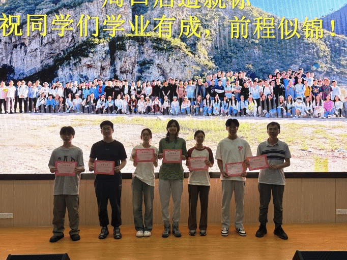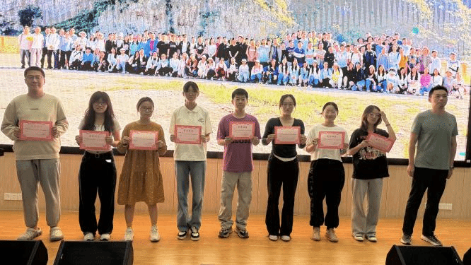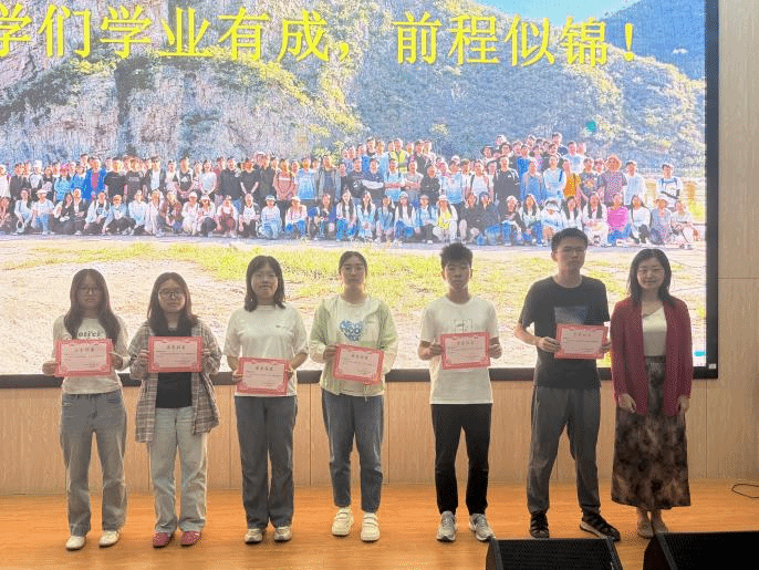 大会进行优秀实习生表彰。各教学班带队老师依次上台,为荣获“优秀实习生”称号的同学颁发奖状。