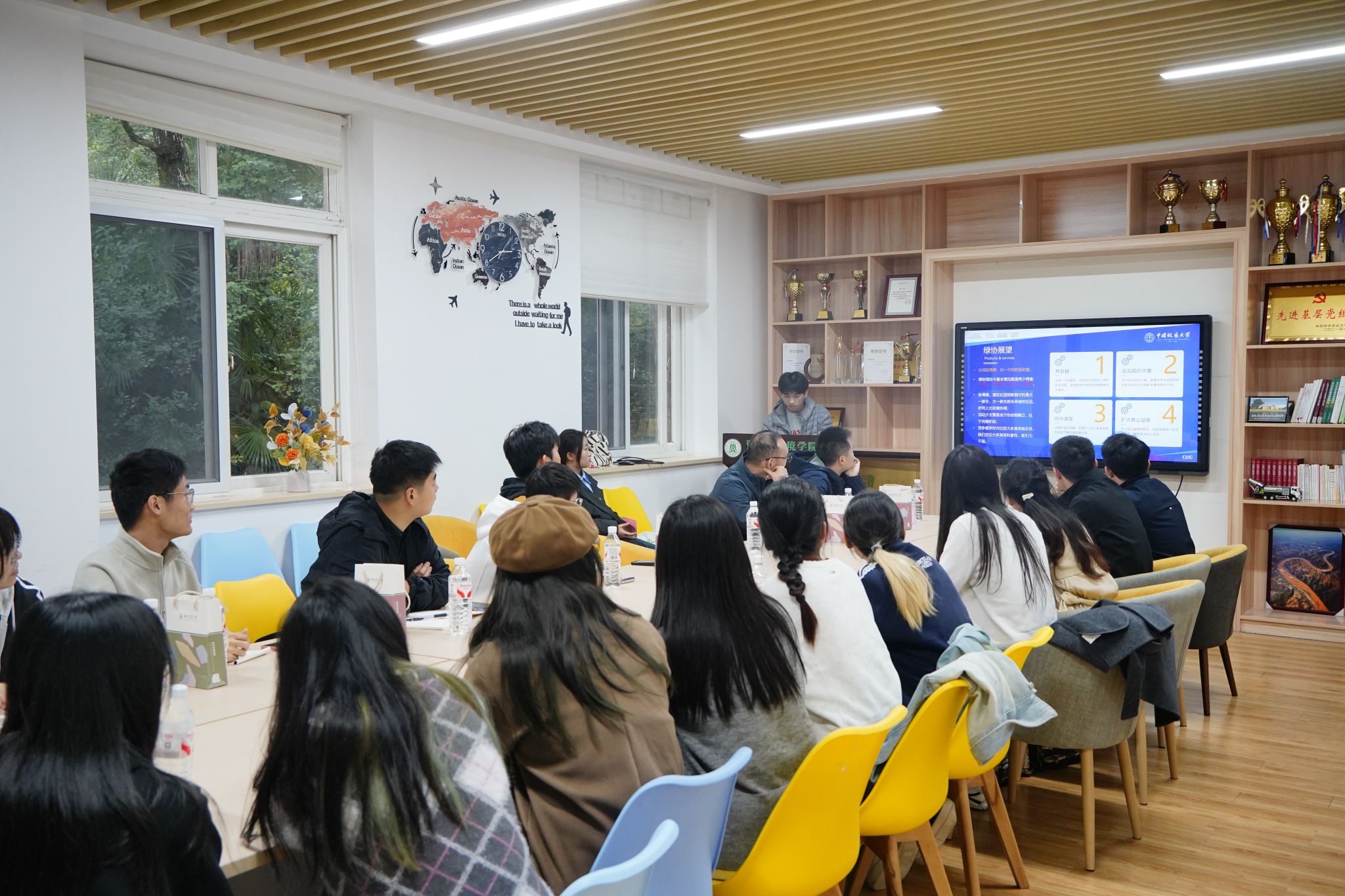 绿色协会指导老师、生物科学与技术系蒋永光副教授,团委书记孟庆达,学生团委副书记、学生会主席团成员及绿色协会骨干成员参与交流。